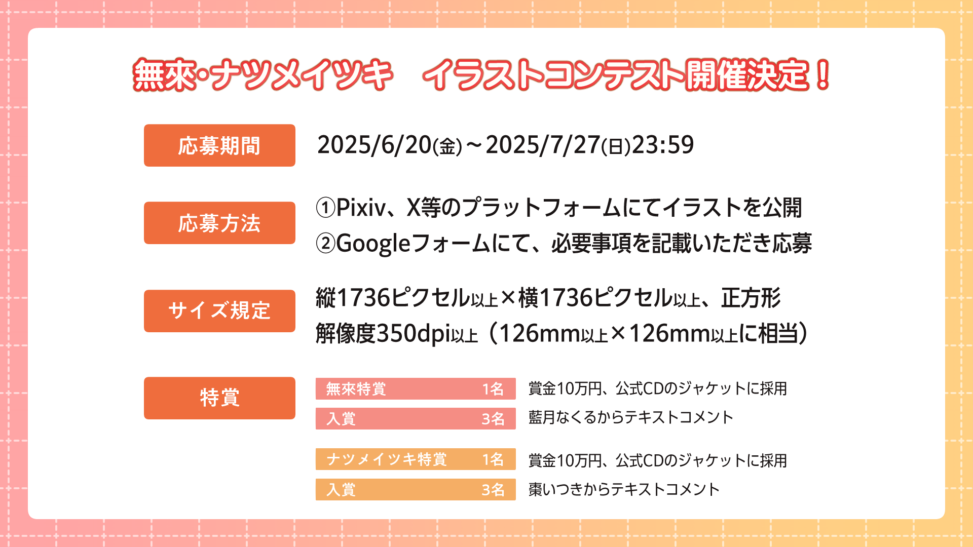 ・ナツメイツキ特賞 1名:賞金10万円、公式CDのジャケットに採用